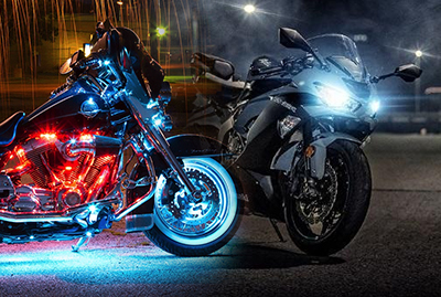 Custom light addtions not only add vibrant style to your bike, but they also make you impossible to miss by other drivers.