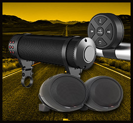Compact & powerful, speakers are best placed on handlebars or saddlebags to maintain weight distribution.