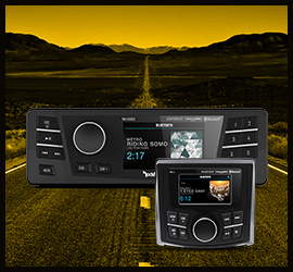 While marine products are made to withstand elements such as water, strong winds, and saltwater corrosion, motorcycle riders face the onslaught of grittier problems. Dust and dirt, extreme heat from the sun, and road debris will render even the best set of speakers into junk.